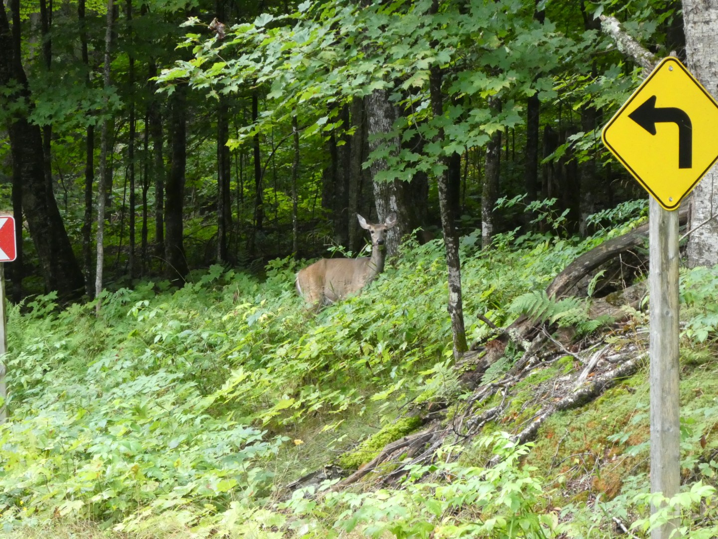 Dit geldt overigens ook voor het spotten van wilde dieren, soms vindt je ze langs de weg (voornamelijk herten en kalkoenen, zie foto's hierboven) maar de Canadese elanden en beren zie je meestal alleen als je dieper het bos of de meren op gaat.