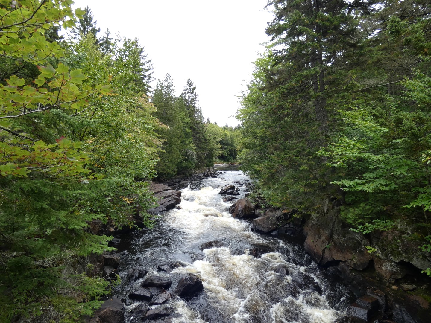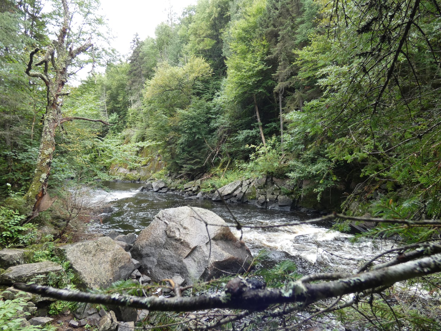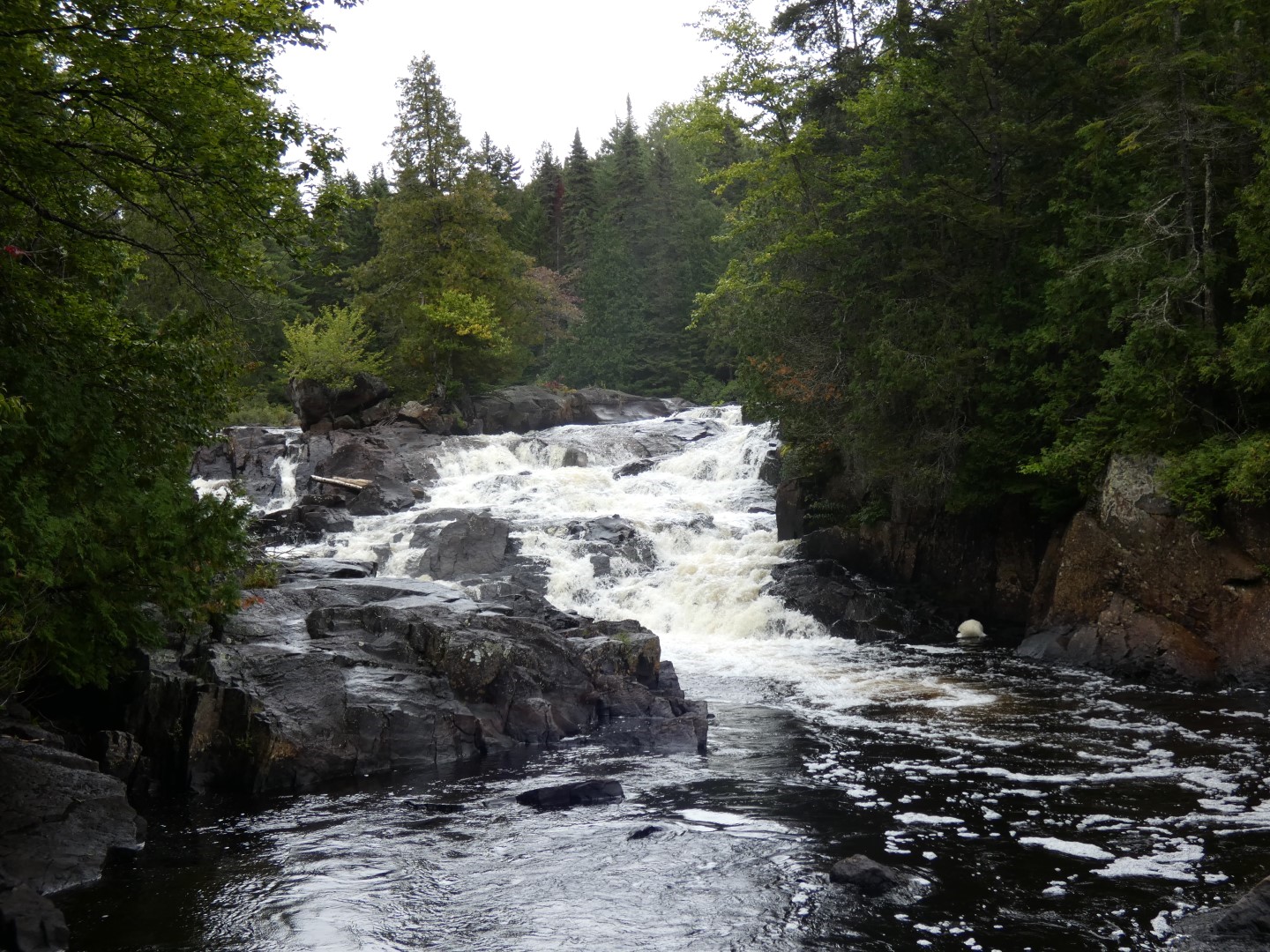 4) Les Chutes-Croches Trail (waterval): De Les Chutes-Croches (waterval) Trail begint vanaf de parkeerplaats Chutes-Croches, dit ligt 5 km ten noorden van het Discovery Center. De Trail is 0,8 km lang en is slechts 15 minuten lopen voordat je bij kleine waterval komt. Het is niet zo indrukwekkend als de Duivelse waterval maar ook zeer de moeite waard om deze te bezichtigen.